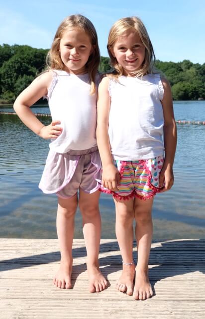 Du bist eine blutige Nähanfängerin und möchtest eine coole kurze Hose für den Sommer zaubern? Mit oder ohne Bommelborte, aus einem oder mehreren Stoffen, dieses Modell schaut immer gut aus. Diese Hose ist einfach und schnell genäht und sie kann individuell abgeändert werden. Es sind 2 Varianten beinhaltet. Variante 1 ist weiter aufgestellt und sollte daher aus sehr dünnen, fließenden Stoffen genäht werden. Diese können auch unelastisch sein. Variante 2 beinhaltet weniger Weite und eignet sich wunderbar für Baumwolljerseystoffe, da diese etwas mehr Stand haben. Die Hose wird aus jedem Material anders fallen und je nach Figurtyp des Kindes immer wieder anders aussehen.