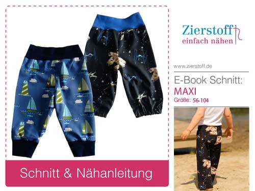 E-Book & Schnitt Pumphose unisex Hose “MAXI”, Gr. 56 – 104