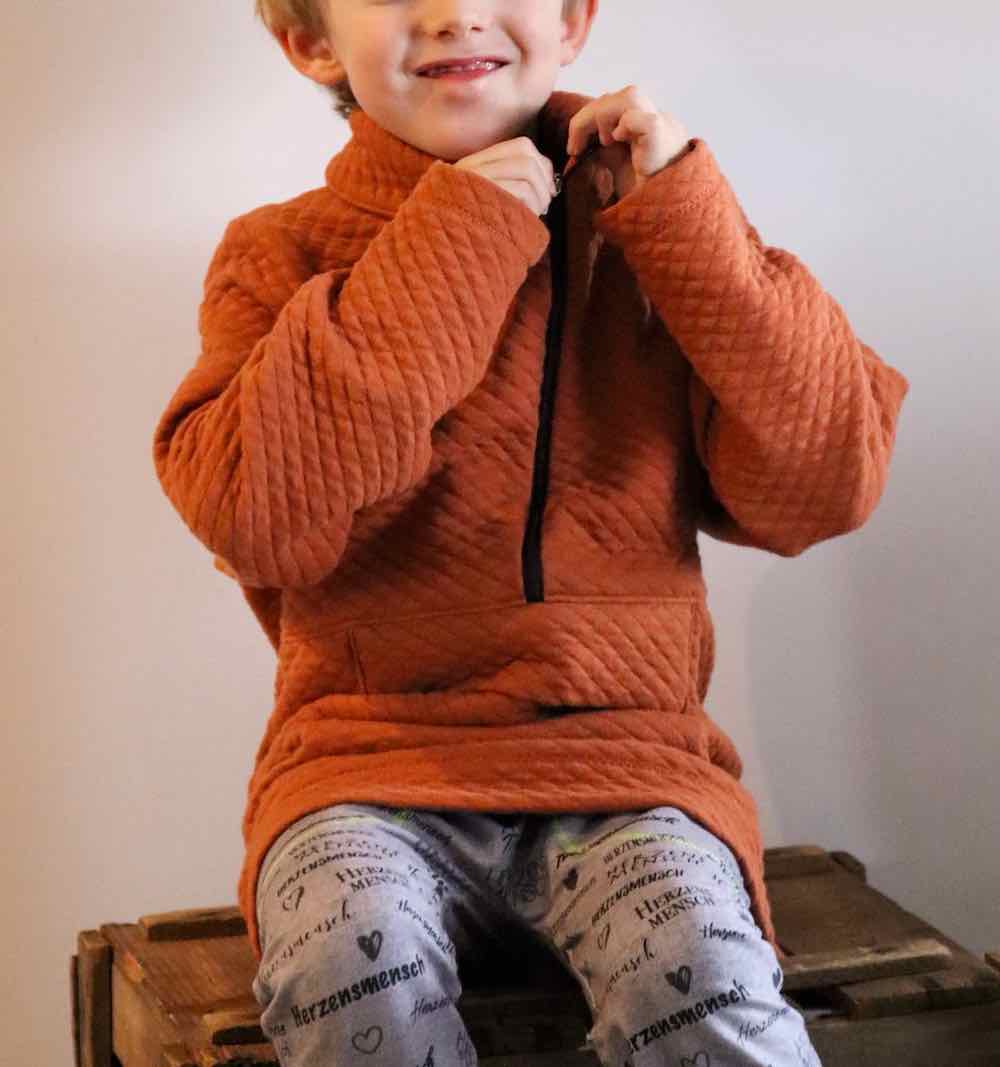 Dieser Troyer Pullover / das Overshirt ist ein toller Begleiter durch das ganze Jahr. Der Pullover mit Reißverschluss wird je nach Stoff immer wieder einen anderen Look haben. Der Reißverschluss kann optional mit einem Band verarbeitet werden. Das elastische Einfassband für den Reißverschluss bekommt ihr hier. Dieses Schnittmuster ist nur für Fortgeschrittene Näherinnen zu empfehlen.